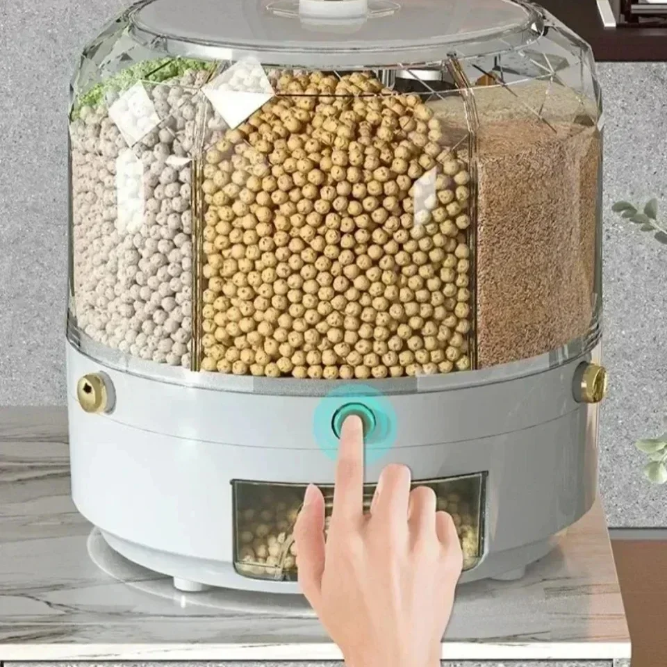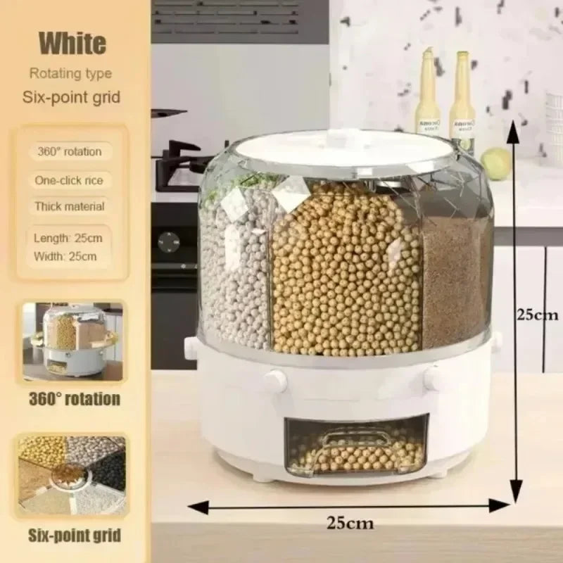Transform your pantry from a cluttered collection of bags and boxes into a streamlined, professional-grade culinary station. The Lumora™ 360° Rotating Grain Dispenser is a sophisticated 6-in-1 storage system designed for the modern home. Combining Japanese-inspired minimalism with high-capacity utility, this station ensures your essential grains, cereals, and legumes are always fresh, organized, and accessible with a single turn.